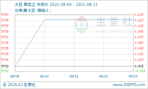 据生意社监测数据显示:本周国产大豆行情小幅上涨。周初国产大豆市场均价5733元/吨,周末国产大豆市场均价5740元/吨,价格上涨0.12%。
